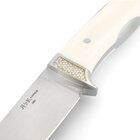 Vollendete Handwerkskunst trifft auf feinste Ästhetik. Dieses Integralmesser wurde mit einem sorgfältig eingepassten Griff aus besonders gleichmäßigem, rissfreiem Mammut-Elfenbein versehen. Vier Pavé-Flächen aus 750er Gold sind mit insgesamt 128 Diamanten besetzt und illustrieren die unbegrenzten Gestaltungsmöglichkeiten dieses Messermodells.