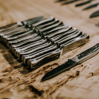 For greater individuality, blades can be etched, sanded, polished, or embellished with engravings. Gold inlays or gemstones are other options to make your knife truly stand out.