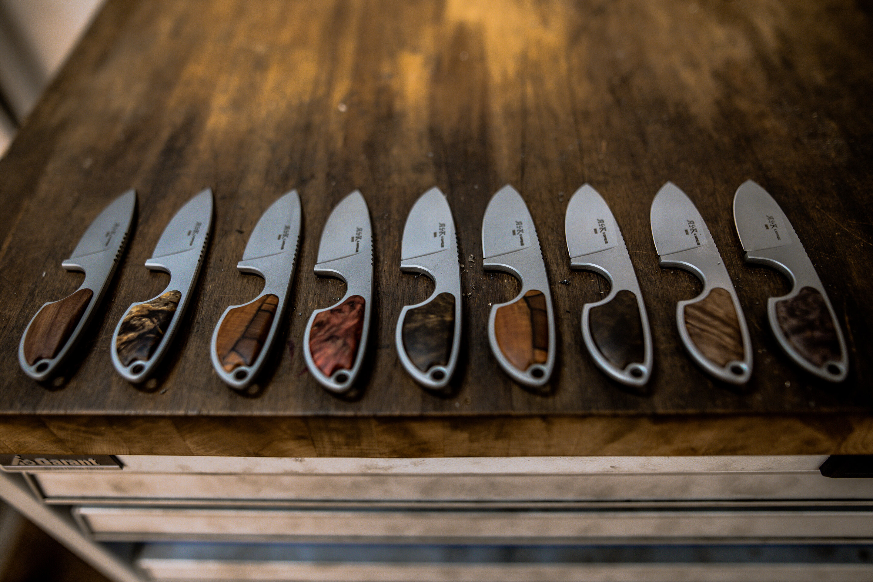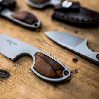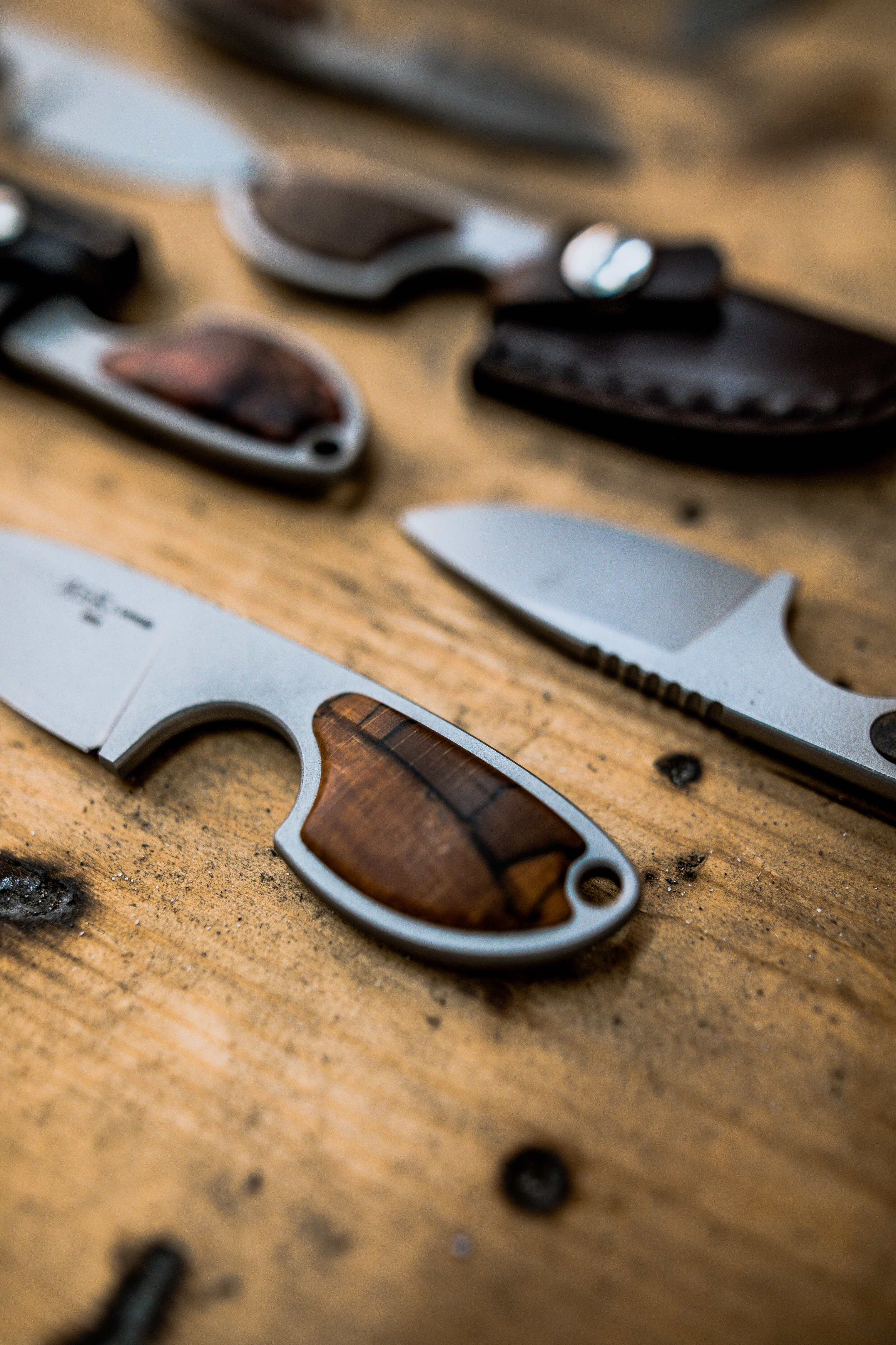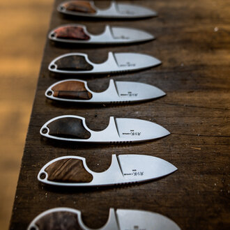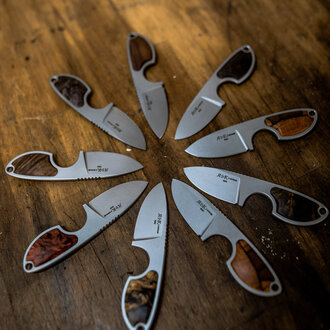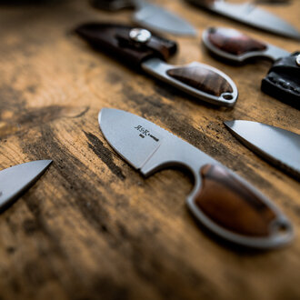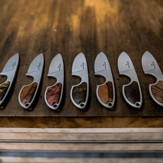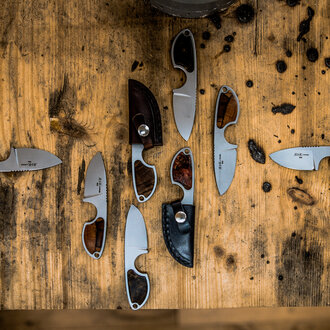 The Corvus Compact is available in a large variety of materials. You can choose from our entire range and put together your own little masterpiece from 185 €, including a leather sheath.