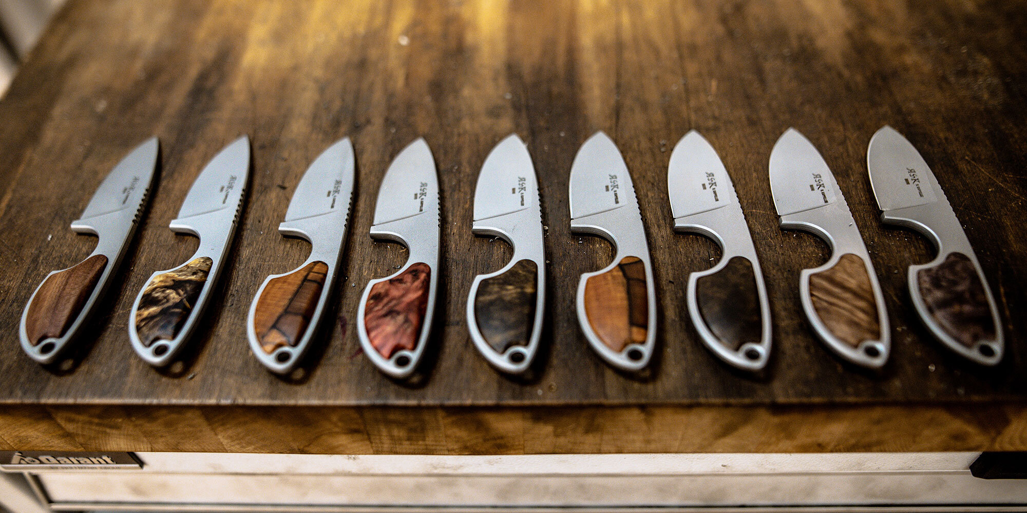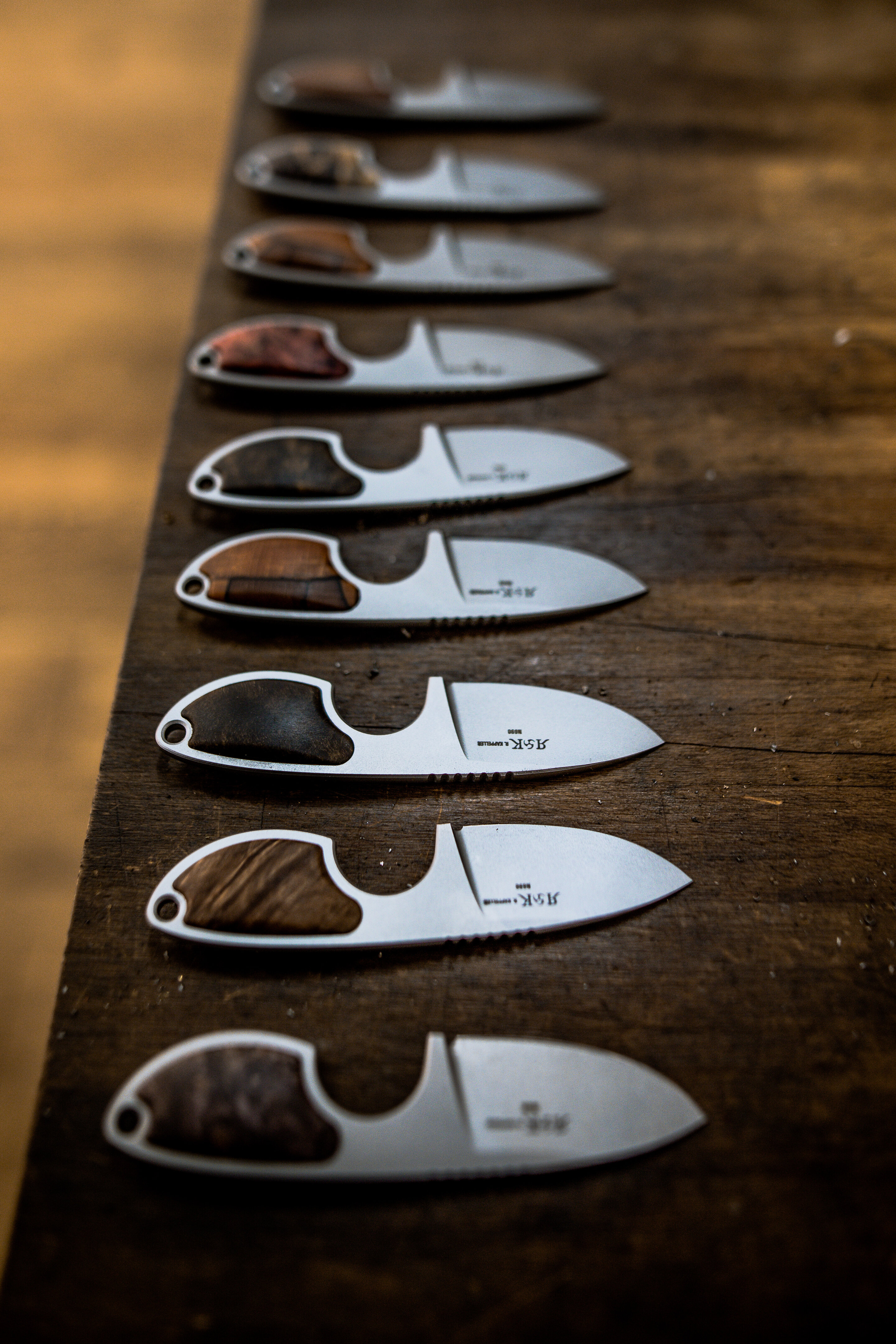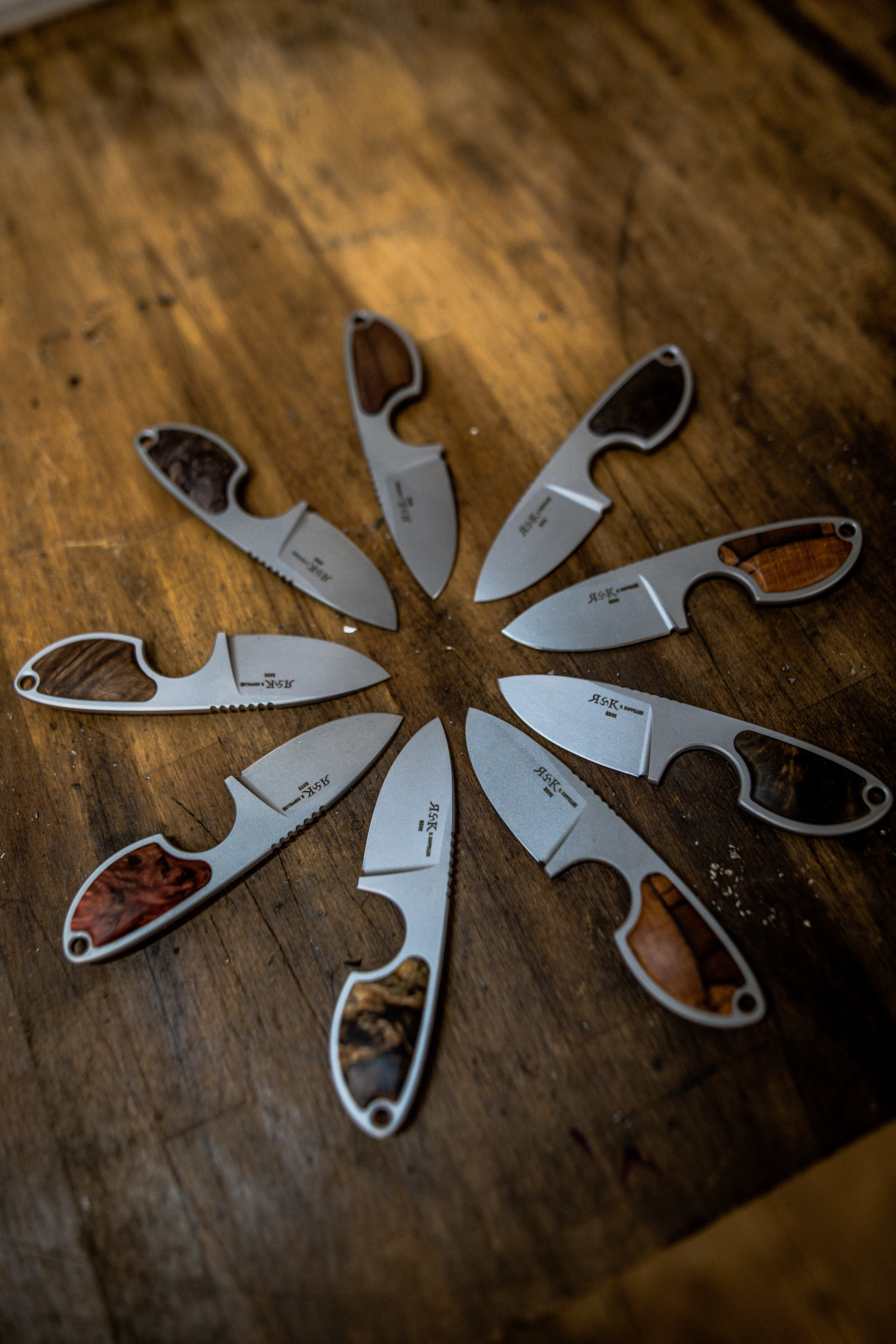 The Corvus Compact is available in a large variety of materials. You can choose from our entire range and put together your own little masterpiece from 185 €, including a leather sheath.