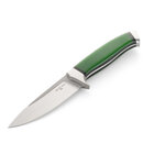 Elaborate handle from patterned jade (sandblasted) underlayed with jet (fossilized brown coal). Blade partly bead-blasted.