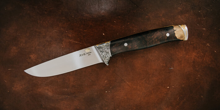 Das Ibex Vollintegral Messer ist ein handgefertigtes Kunstwerk, das traditionelle Materialien, Gravurtechniken und Messermacherkunst miteinander vereint. Der Griff aus...