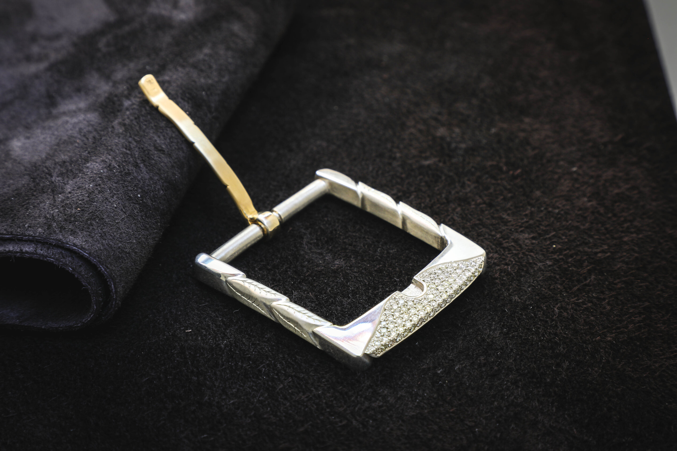 Eine Gürtelschnalle aus Silber, Gold und Diamanten