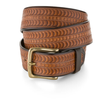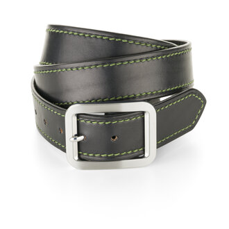 Die meisten unserer Gürtel werden mit einer Handnaht versehen. Dabei kommt der traditionelle Sattlerstich zum Einsatz, bei dem mit zwei Nadeln und einer scharfen Ahle mit rautenförmigem Querschnitt genäht wird. Dadurch entsteht nicht nur die ansprechende Schrägstellung der Nahtstiche, sondern auch eine ungemein haltbare Naht. Diese Art des Nähens erfordert jedoch Präzision und Übung, denn ein einziger schiefer Stich würde bereits unschön auffallen.