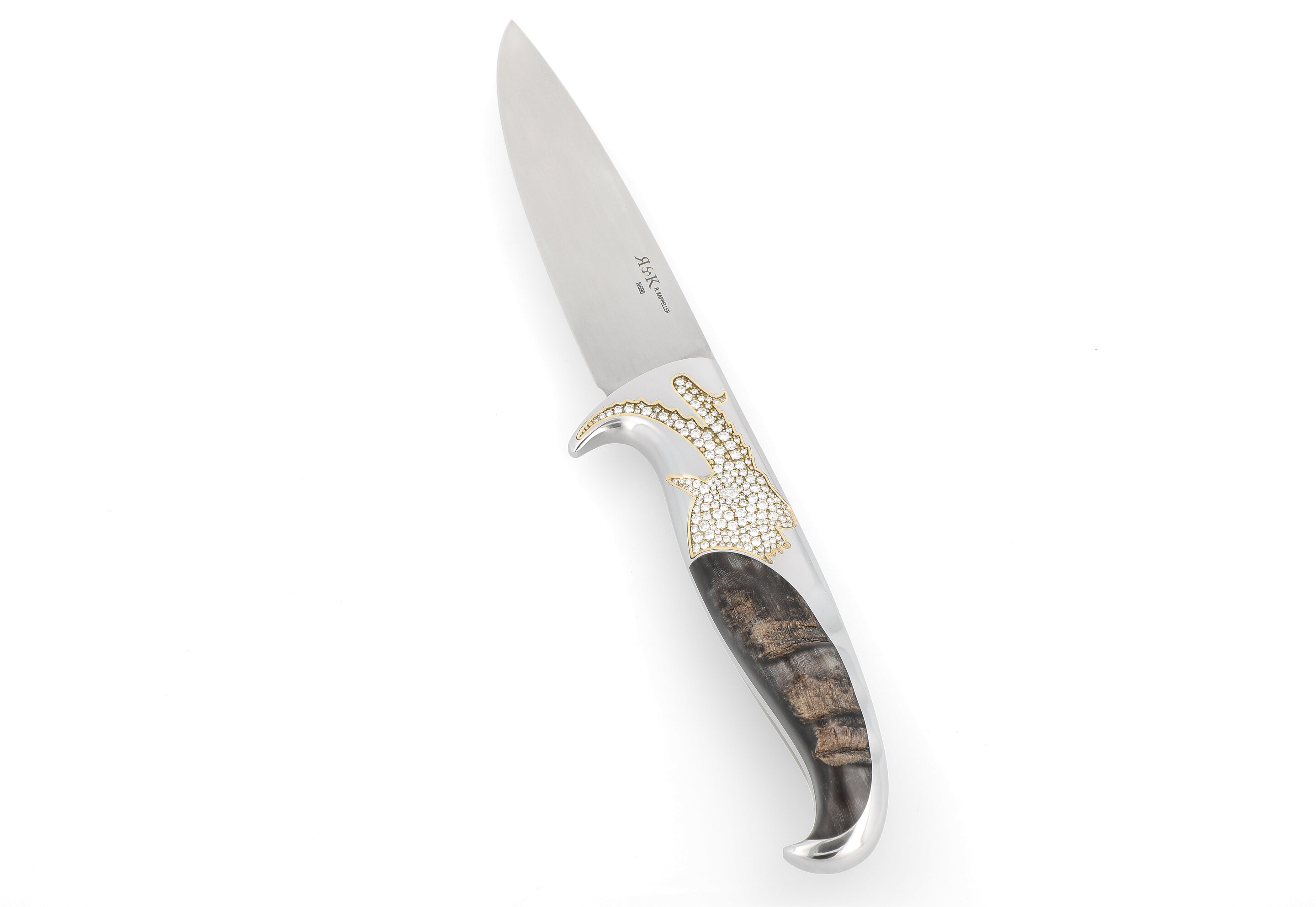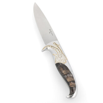 Bei der Verzierung von Kunstgegenständen wie Messern und anderen Waffen werden schon seit Jahrhunderten auch Edelsteine und Diamanten verwendet. Die Fassungen werden dabei so vorbereitet, dass die Steine unbeschädigt wieder ausgefasst werden können. So kann man besondere Juwelen bei Bedarf entnehmen und in einem anderen Gegenstand verarbeiten. Diamanten verleihen einem Messer außerordentliche Wertigkeit und Individualität. Brillanz und Farbe der Edelsteine, kombiniert mit präziser Handarbeit, machen das Messer zu einem Kunstwerk für Generationen.