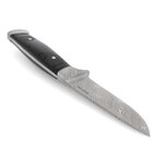 Ein beeindruckendes Beispiel meisterlicher Handwerkskunst, gefertigt aus einem massiven Block Torsionsdamast. Die gedrehten Musterungen im Stahl erinnern an kosmische Wirbel und Sterne, die sich harmonisch über die gesamte Klinge erstrecken.