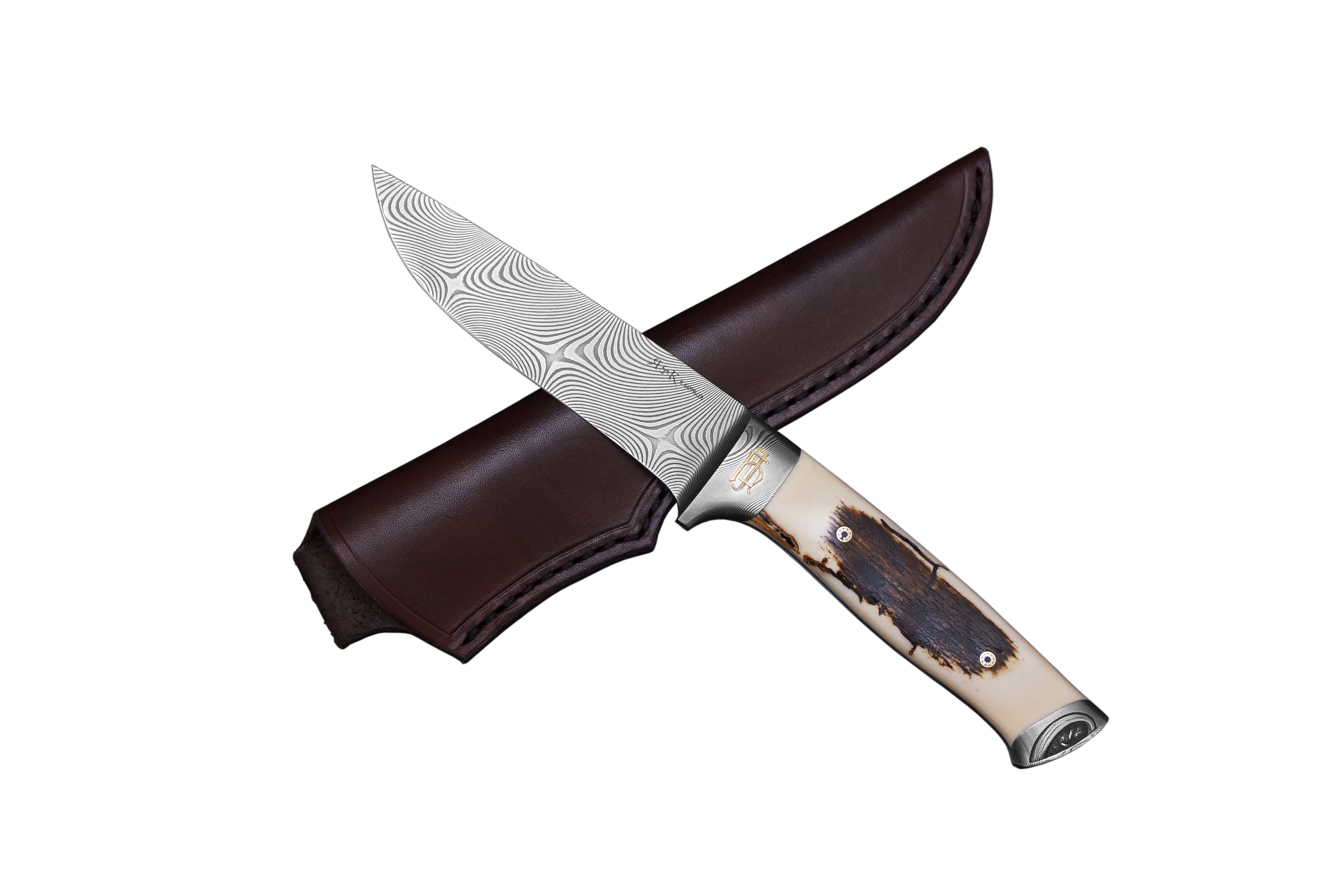 Tiefgestochene Gravur eines Mammuts auf dem Abschluss. Monogramm auf der Backe in Gold eingelegt.