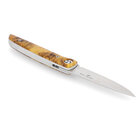Elegantes Klappmesser aus der Serie "Mono". Der Griffkorpus wurde aus einem einzigen Stück Aluminium gefertigt, somit besteht das Klappmesser aus weniger Bauteilen, weist keine Fugen auf und ist daher sehr robust und leicht zu pflegen. Die Klinge wurde aus dem pulvermetallurgischen, hochlegierten RWL-34 Stahl gefertigt.