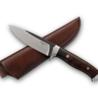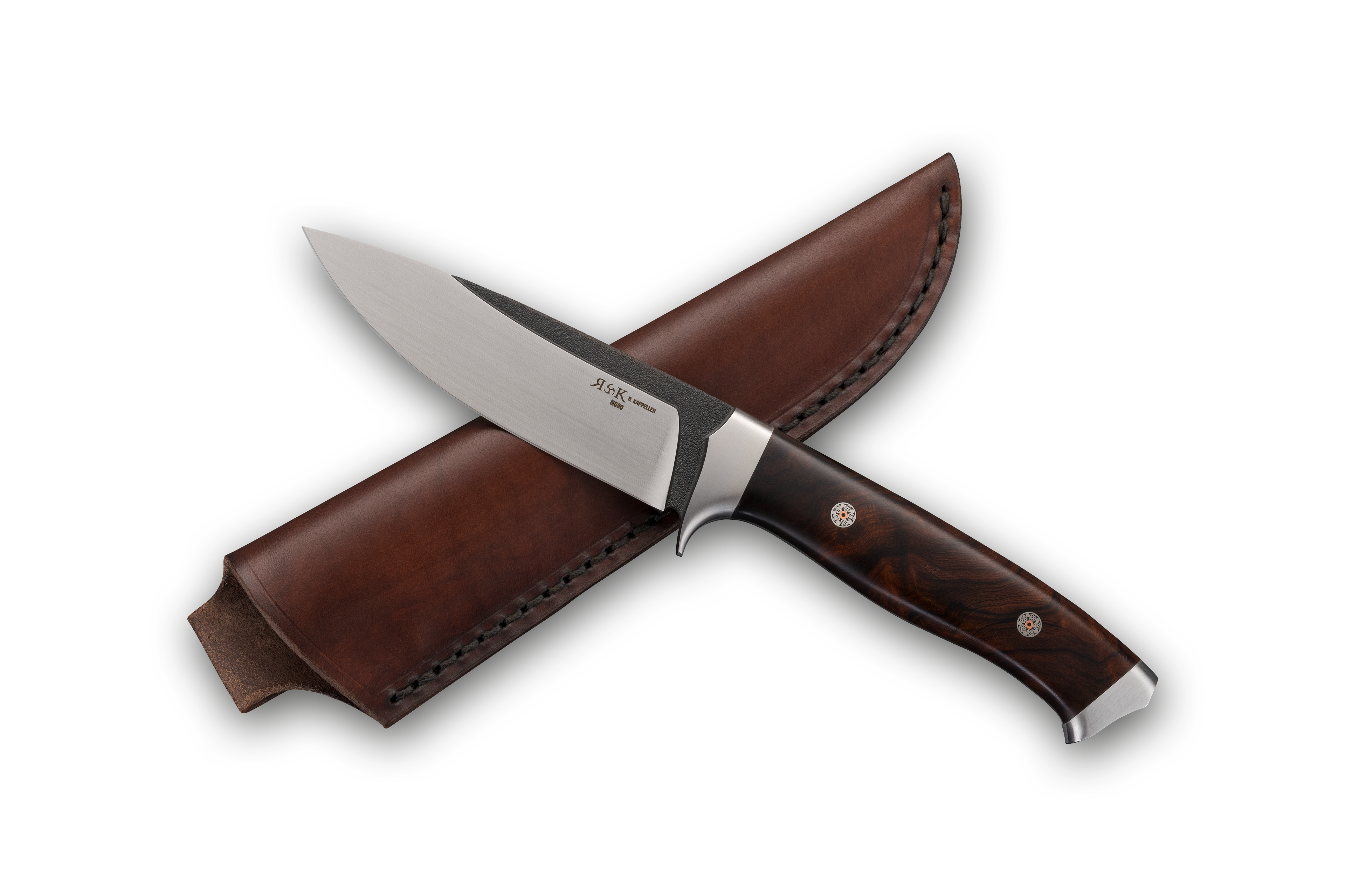 Sich verjüngende Angel, Klinge abgesetzt, Hintergrund punziert und geschwärzt. Griffschalen mit Mosaiknieten fixiert.